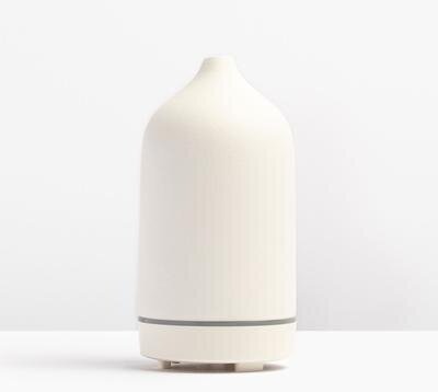 Features | Matte ceramic outer, BPA-free plastic, 4-8 hour run time, ambient LED light, fills rooms up to ~500 sq. feet