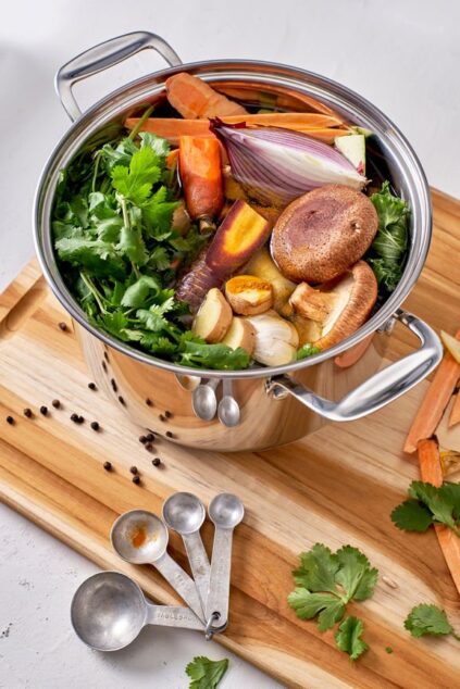Spruce up your space with your favorite dinnerware (you know, those handmade ceramic bowls you love, but hardly get to use?), turn on some music, and light candles, or string up solar lights on the patio. Dinner parties are a wonderful way to deepen bonds with old friends, and connect with new ones. A food waste dinner party does double duty by infusing this gathering with a positive intention to tread lightly and see the value in what we have. Cheers to that.
